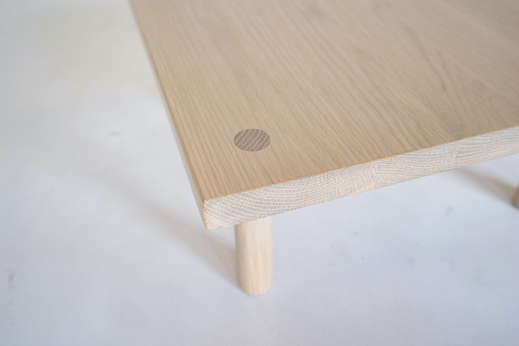 This solid white oak stand has a hand-pressed tenna oil finish. Its cylindrical legs give this table a modern and fresh look. Place this table on top of a counter and showcase some plant life. Or, pair it with the tall and standard-sized Yucca Stand tables on your living room floor. Accent with tabletop decor for a unique multi-tier, layered look. No nails or screws were used to create this masterpiece, as traditional joinery methodology was used to build it.